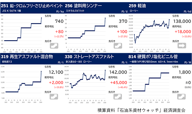 経済調査会は4月17日、中東情勢の悪化に伴う原油価格の上昇を受け、石油系資材の価格動向をまとめた「石油系資材ウォッチ」を臨時速報として公開。