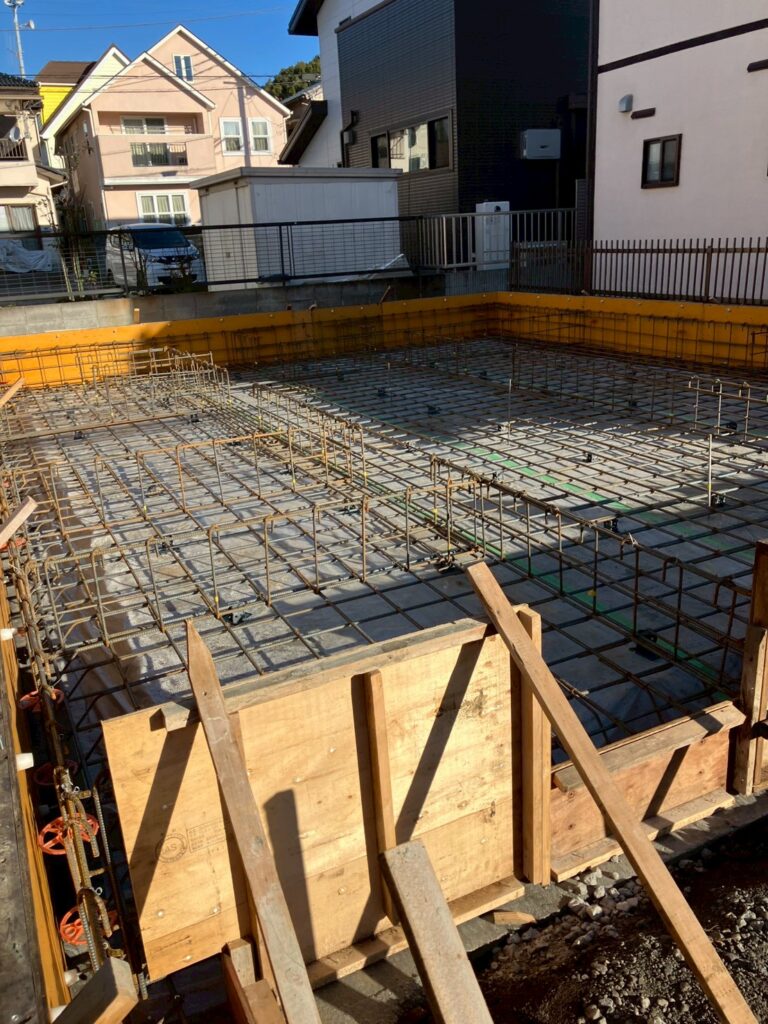 耐圧版は、建物の荷重を受け取て、建物の荷重を受け止めて支え、地盤からの反力にも耐えられる構造体です。
