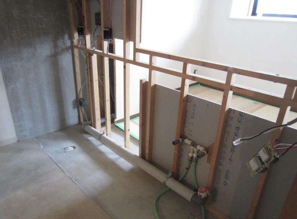 ・既存のキッチンを解体、撤去後、新規のキッチンに合わせて、配管や配線をし、下地材の施工後、新規のキッチンの設置となりました。